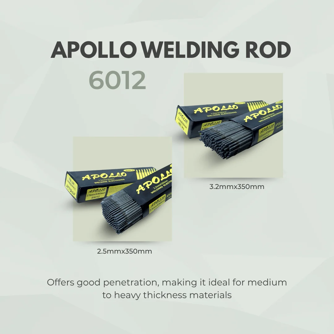 Apollo Welding Rod Gray 6012 (1/8″ / 3.2mm) is a high-quality, high-titania electrode designed for versatile all-position welding. It provides a stable arc and a smooth finish, making it ideal for both professional fabrication and general repairs.