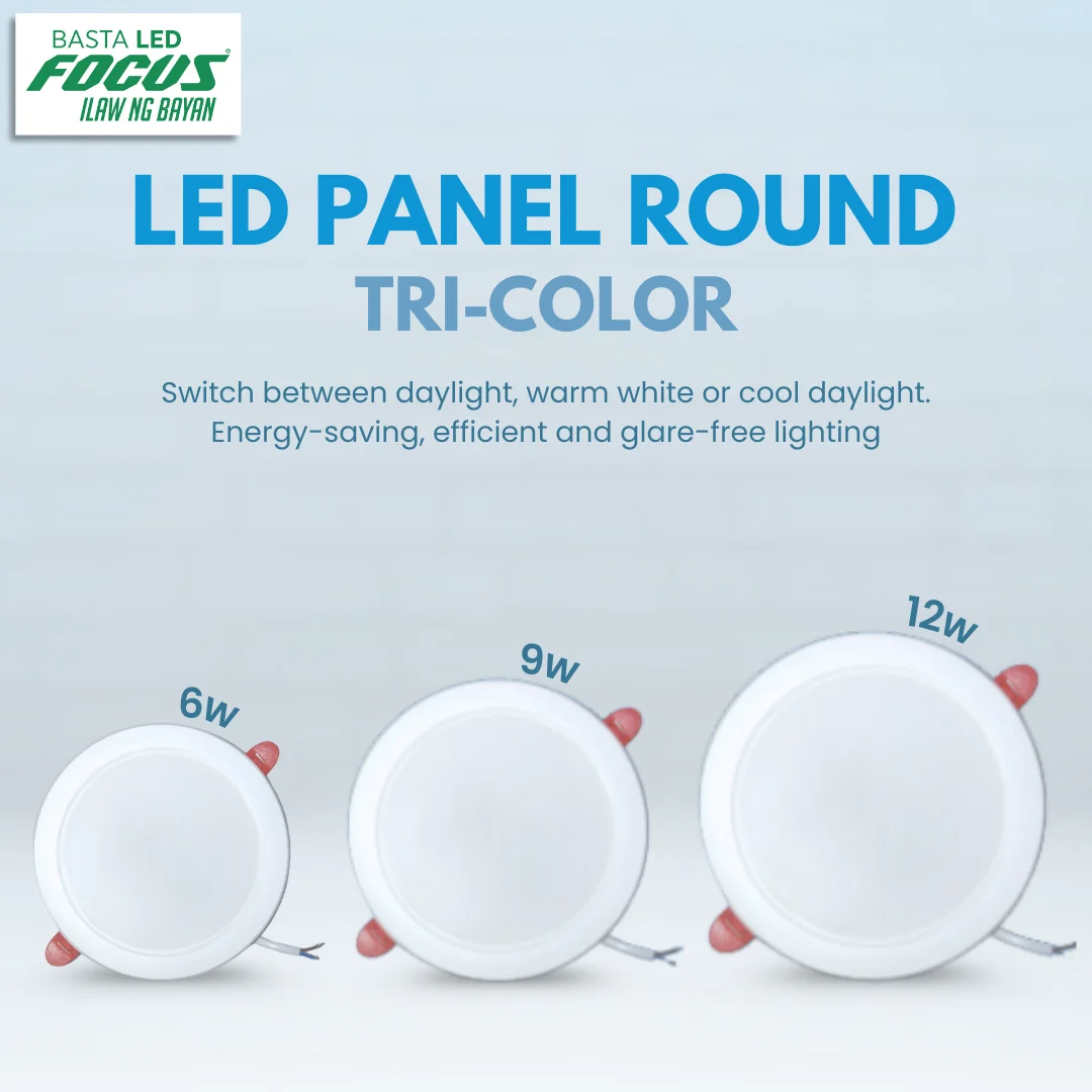 Lighting solution designed for modern spaces. This round LED panel features tri-color technology, allowing you to switch between warm, cool, and daylight tones to suit any environment. Its slim design ensures easy installation, while delivering bright, uniform illumination—perfect for homes, offices, and commercial settings.